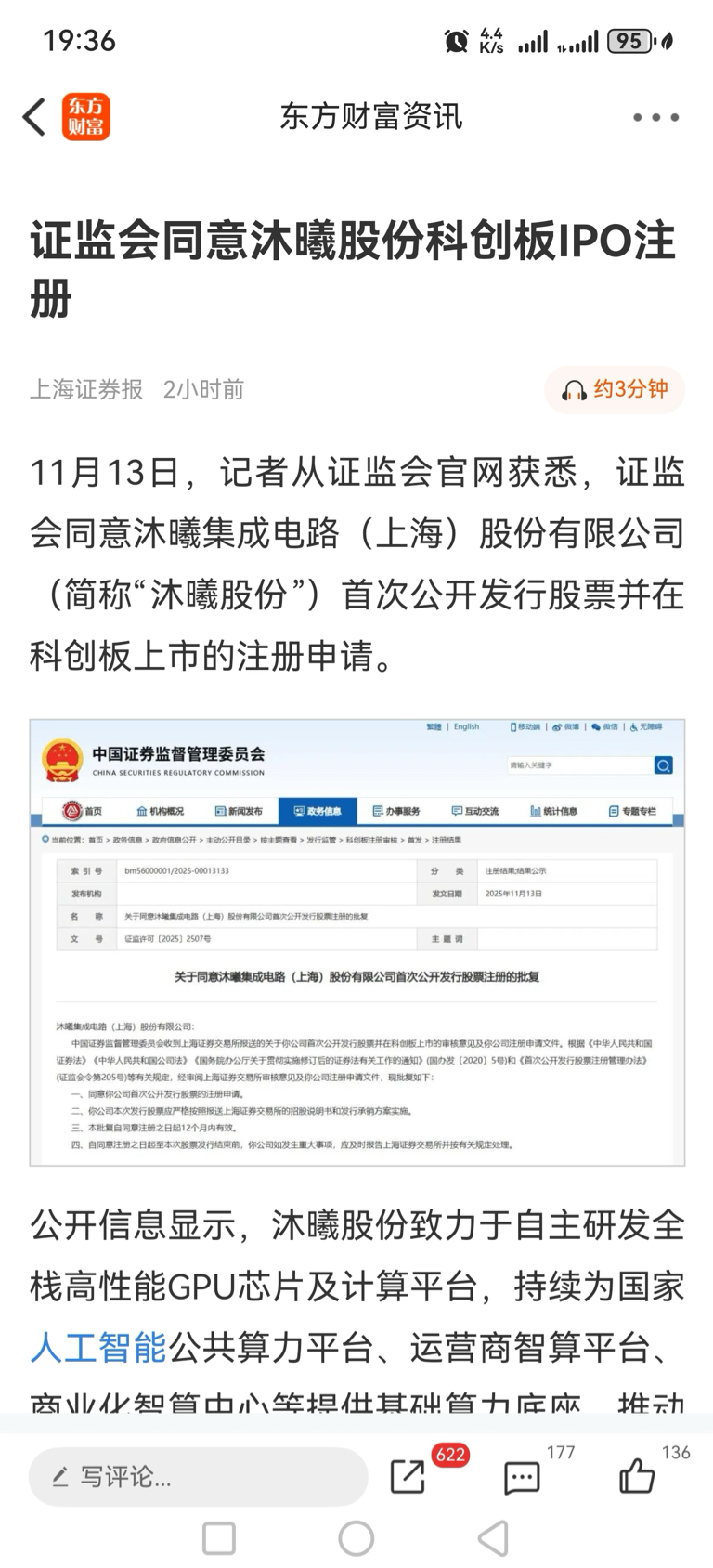$恒为科技(SH603496)$ 有谁知道沐曦股份如果上市,会对恒为并购重组有影响吗