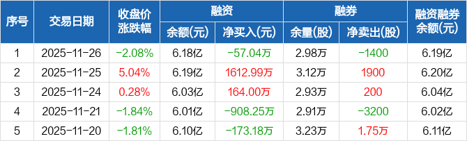 恒为科技:融资净偿还57.04万元,融资余额6.18亿元(11-26)