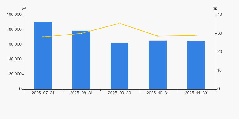 2025年7月31日至今,公司股东户数显著下降,区间跌幅为28.86%。2025年7月31日至2025年11月30日区间股价上涨2.73%。