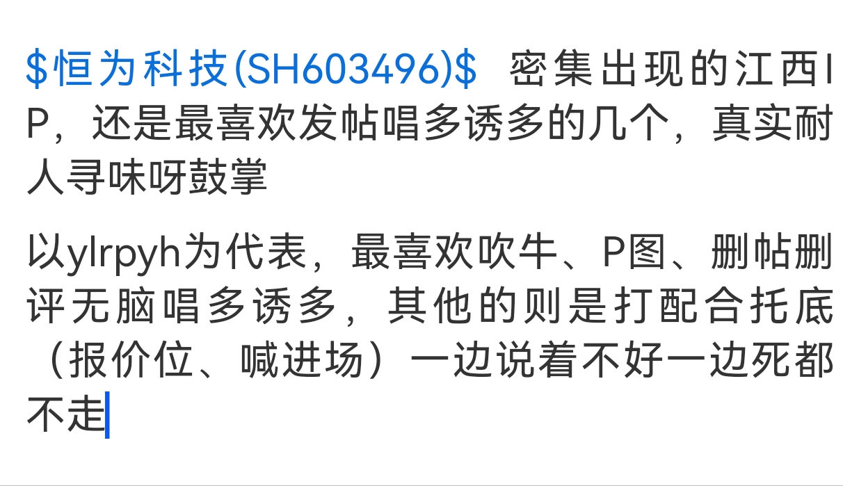 温馨提示: 1.根据《证券法》规定,禁止编造、传播虚假信息或者误导性信息,扰乱证券市场;2.用户在本社区发表的所有资料、言论等仅代表个人观点,与本网站立场无关,不对您构成任何投资建议。用户应基于自己的独立判断,自行决定证券投资并承担相应风险。《东方财富社区管理规定》