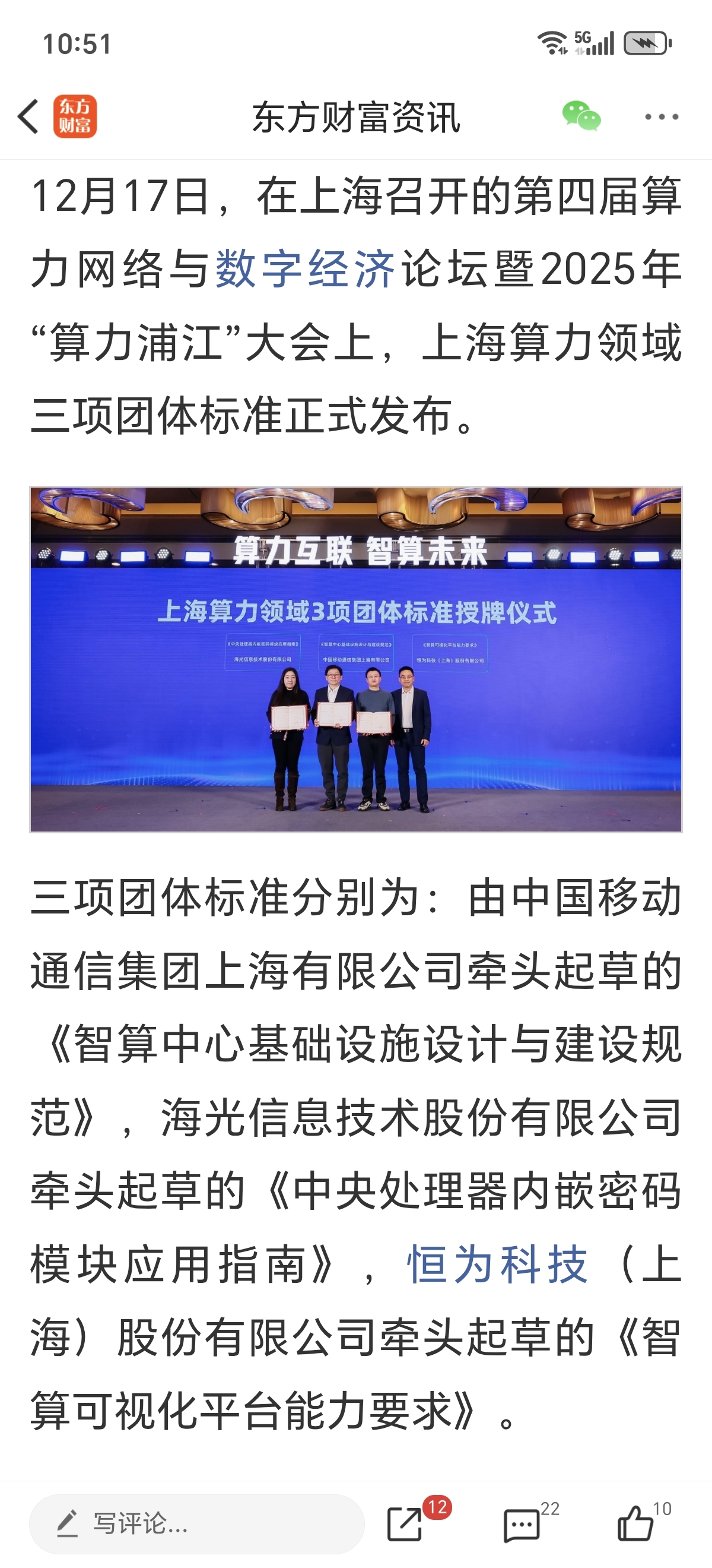 $恒为科技(SH603496)$ 打电话给了公司,收购进展顺利。增发价25年,锁仓半年,现价26元,同增发价接近,上海智算可视化龙头,这位置买入,与增发大股东同一起点,只输时间不输钱