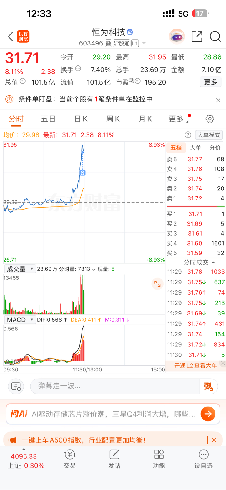 $恒为科技(SH603496)$ 留下的发财,套了我92天,赚了100块
