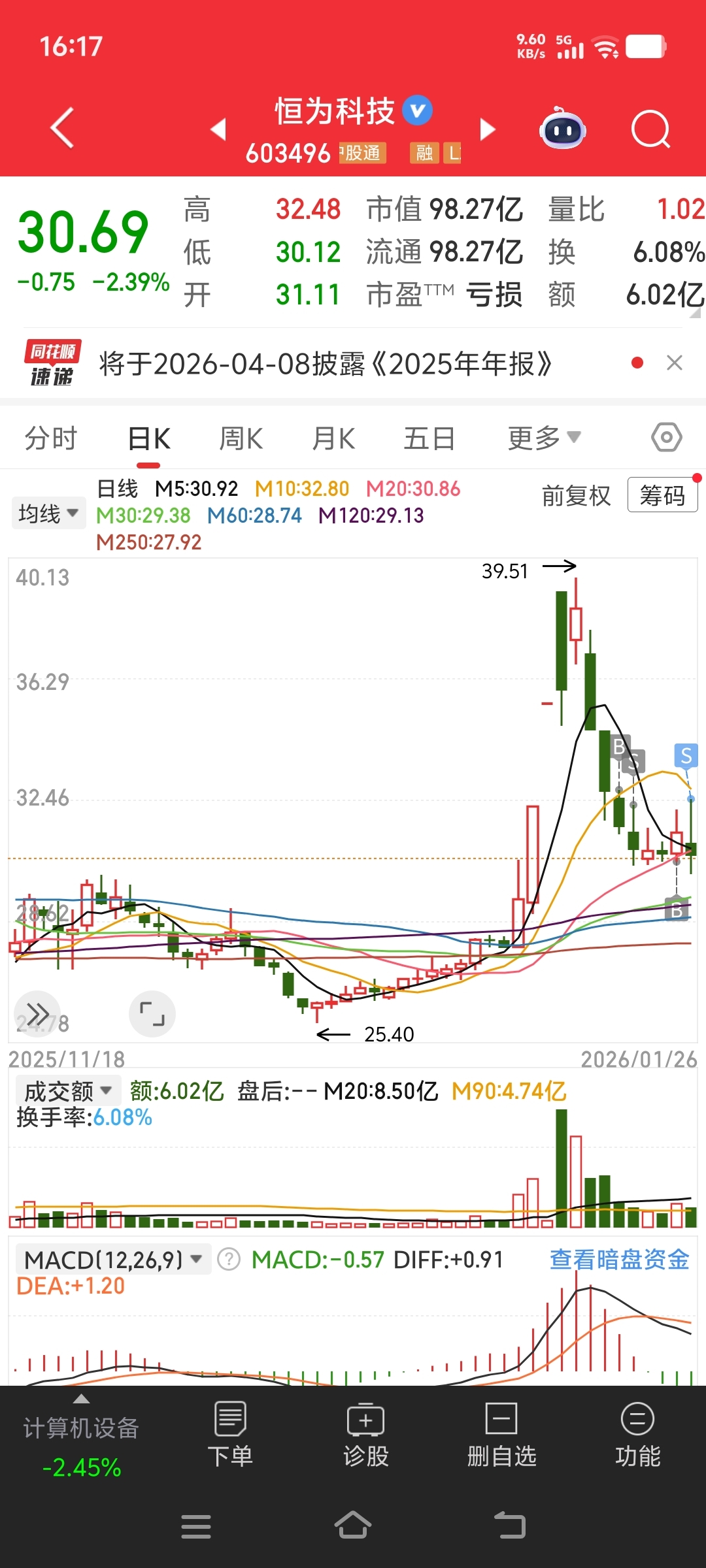 恒为科技都抛了差点又被套住