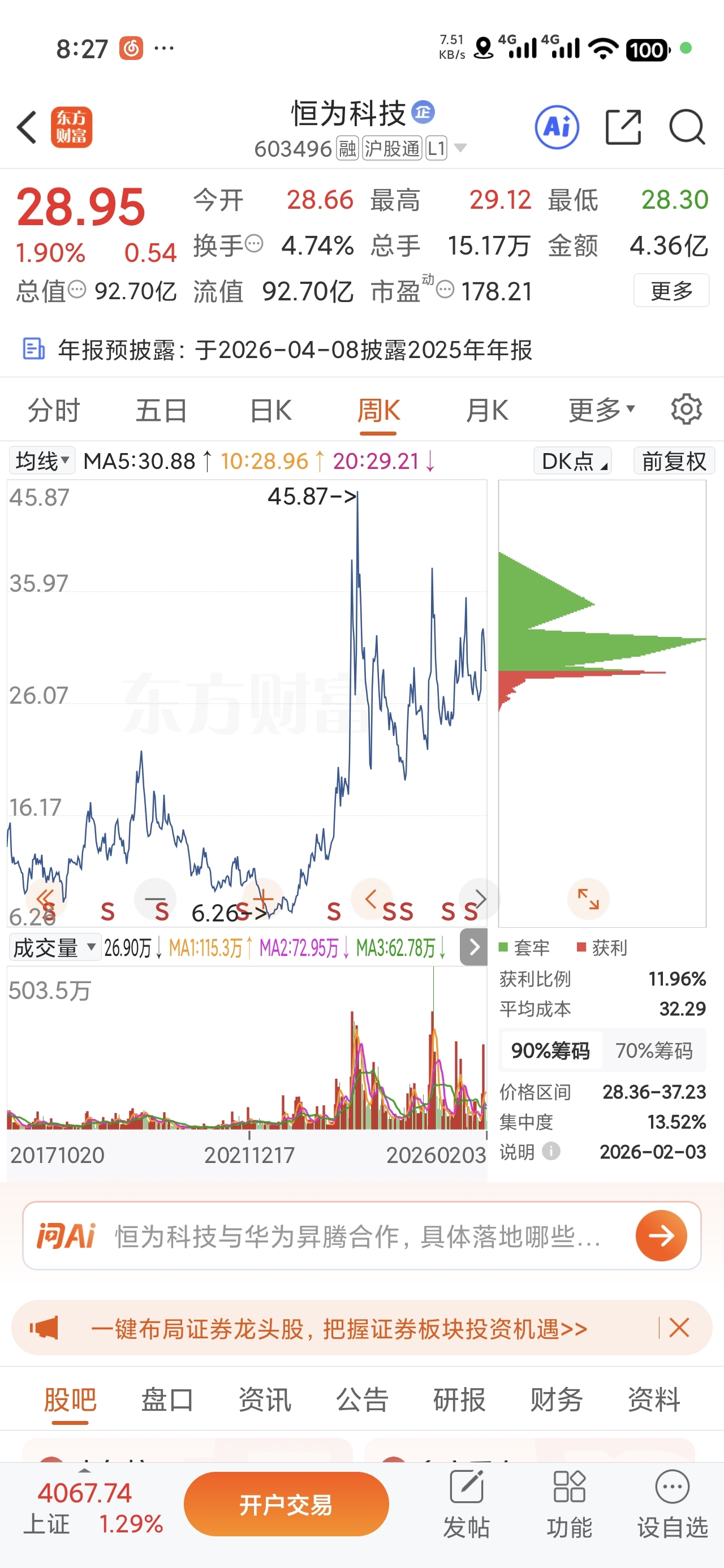 $恒为科技(SH603496)$ 图形这么看还挺有意思的,收敛走势,而且好像要决定是上还是下了