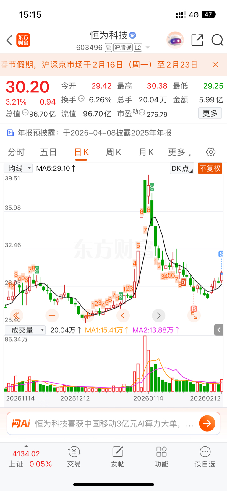 $恒为科技(SH603496)$ 出了出了