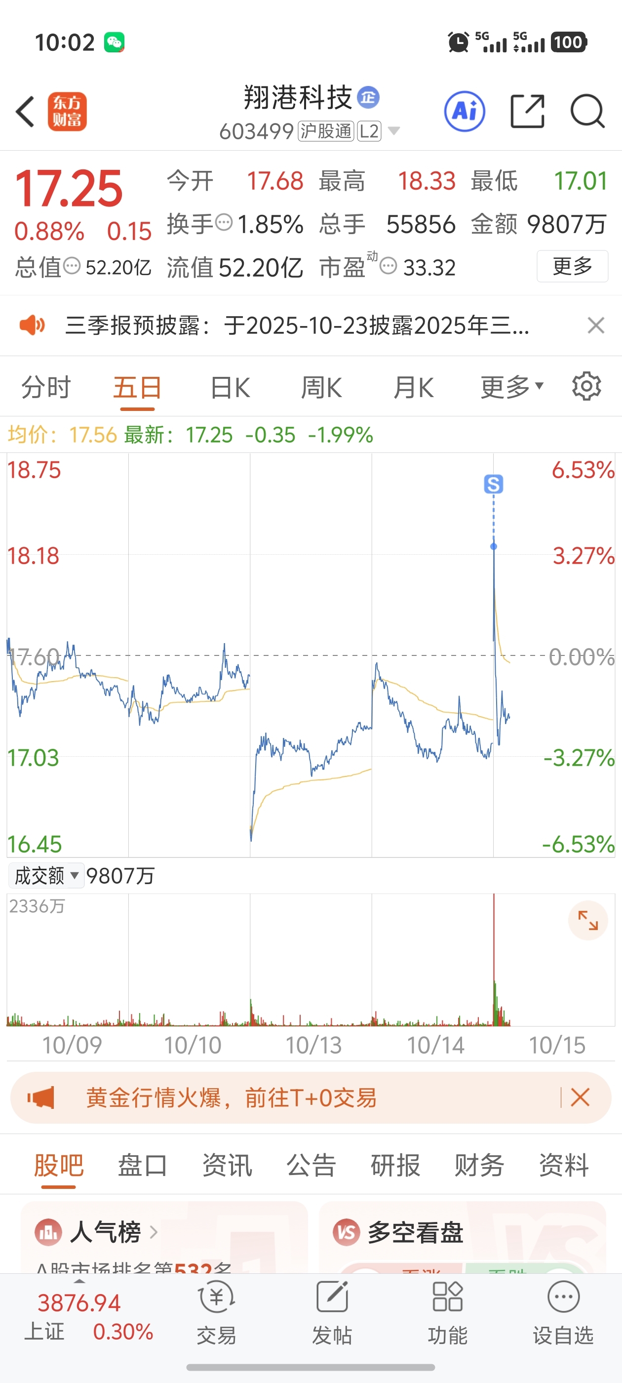 $翔港科技(SH603499)$ 兄弟们我准备再买回来了