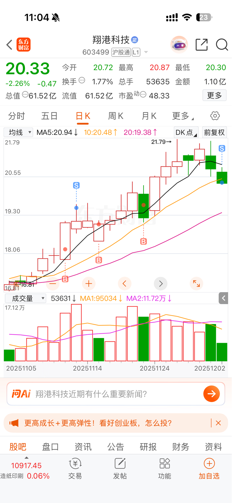 $翔港科技(SH603499)$ 拿了这么长时间,谢谢了翔子,昨天今天走的太弱了,过段时间再来
