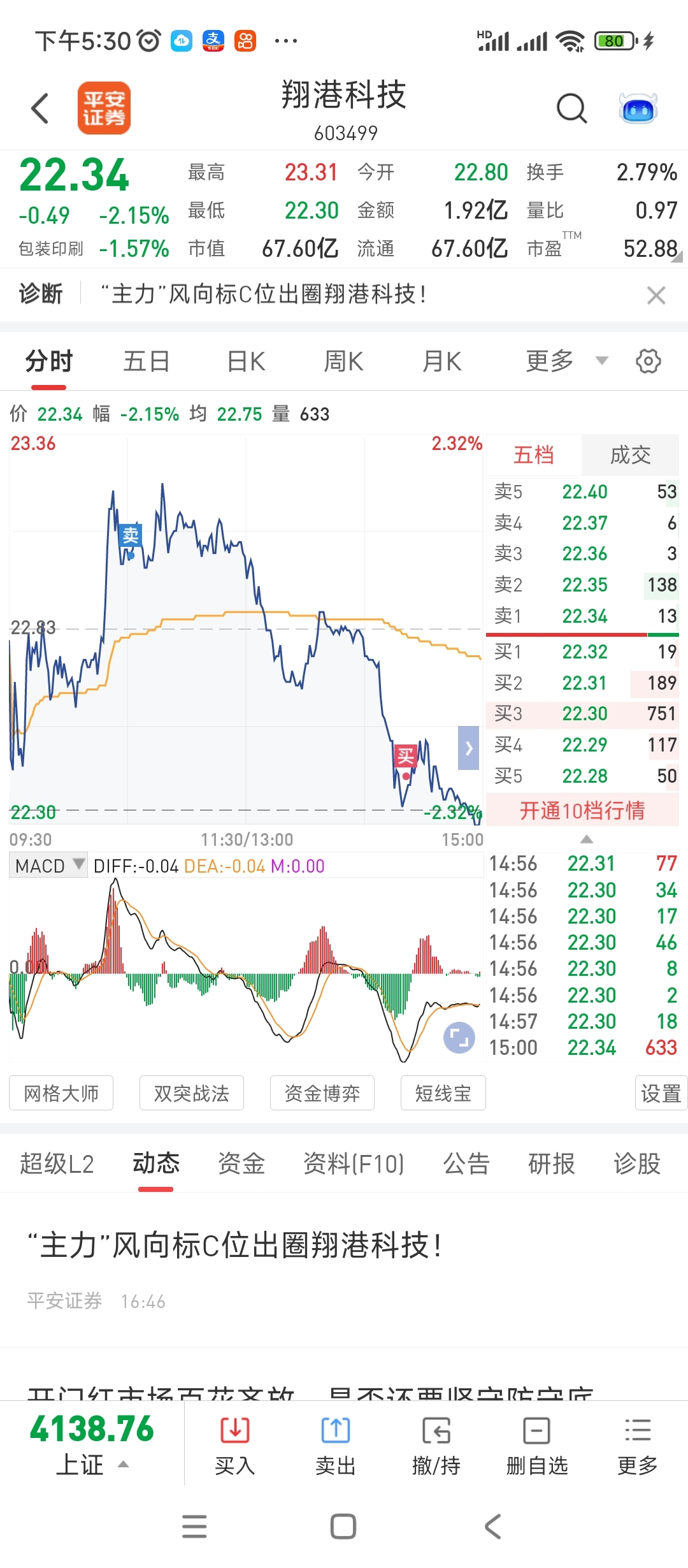 $翔港科技(SH603499)$ 买回来,希望明天不闷杀