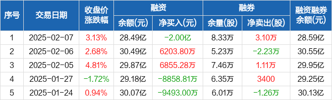 韦尔股份:融资净偿还2亿元,两市排名第三(02-07)