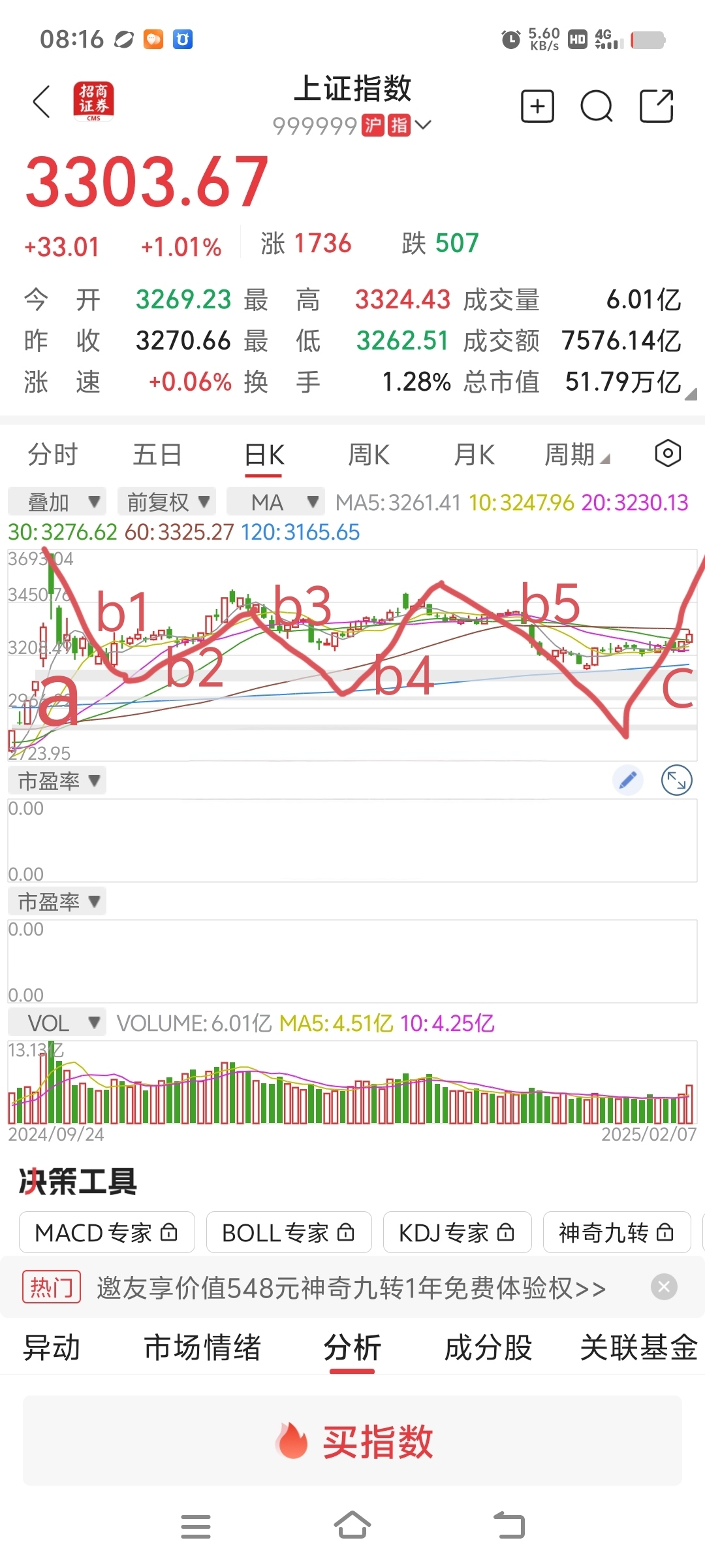 大盘波浪理论,分abc浪,924是大a浪开启,b浪分5小浪,大c浪是主升浪,现在
