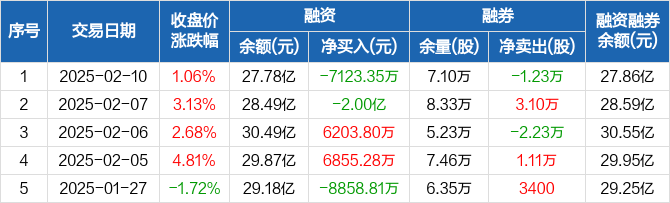 韦尔股份:融资净偿还7123.35万元,两市排名第19(02-10)