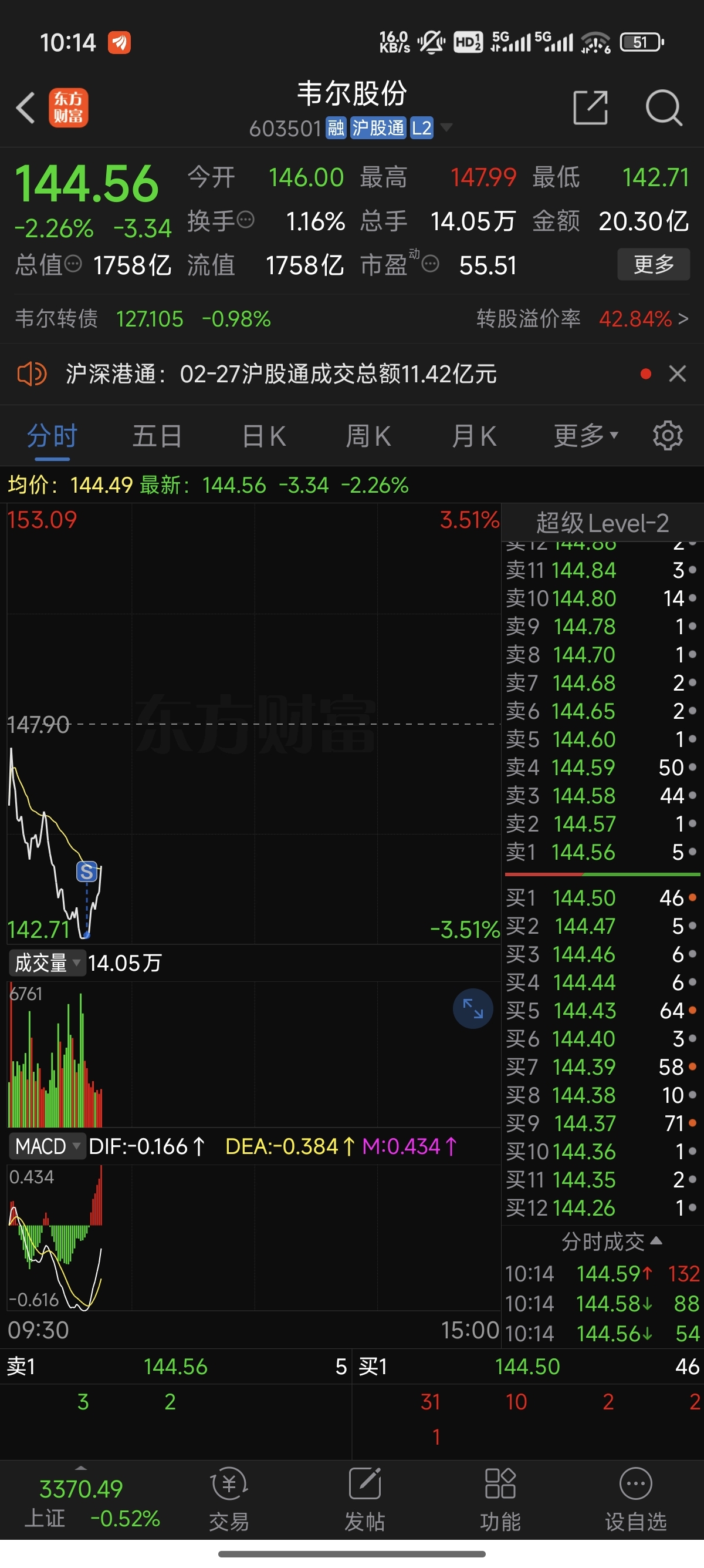 $韦尔股份(SH603501)$ 就盯着我那几百股