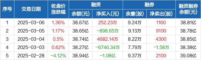 韦尔股份:融资净买入252.23万元,融资余额38.67亿元(03-06)