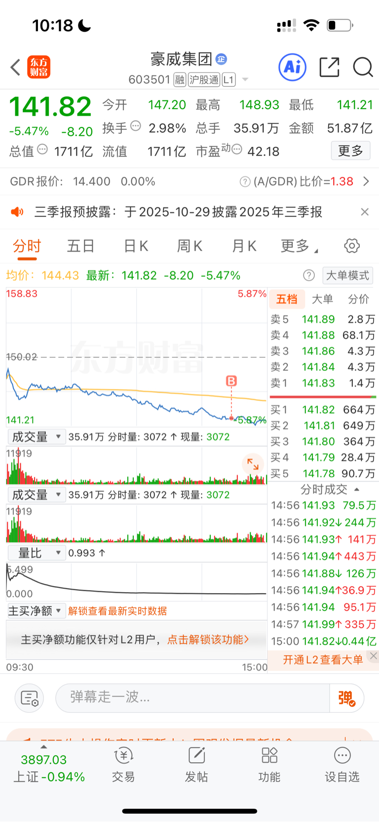 $豪威集团(SH603501)$ 153出掉的部分慢慢分批买回,一定是分批,还没到底