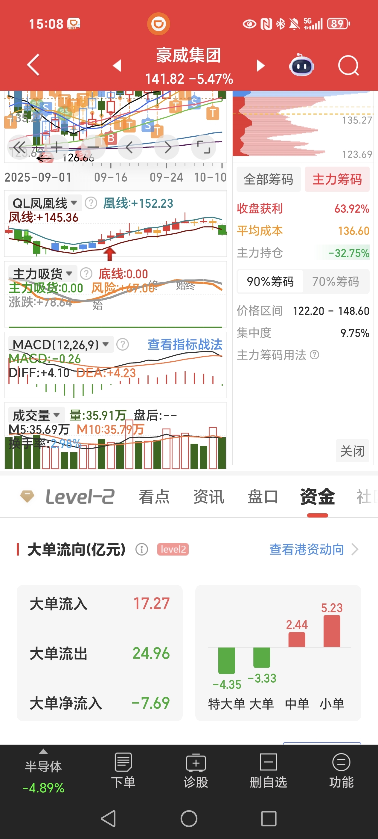 $豪威集团(SH603501)$ 不要着急想着抄底,等有了企稳k线再说,周五刚出现卖出信号,下周还是得继续探底。1号的帖子说的很明确节后找合适的位置先减仓出来观望,吧里有不怀好意的人一直让无脑买,短期还是谨慎观望,长期是看多的,目前由节前的3成仓降到不到2成看戏