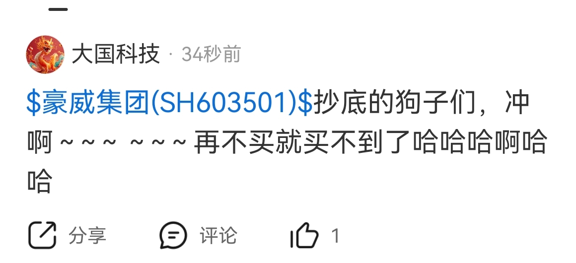 $豪威集团(SH603501)$ 这种二狗,老夫上一波抄底的时候遇到太多了,大概率就是个追涨杀跌的亏货,炒股亏傻了,大家不要受这种剑人的干扰!!我们护盘就要心中无盈亏!只有这样才能护盘成功!