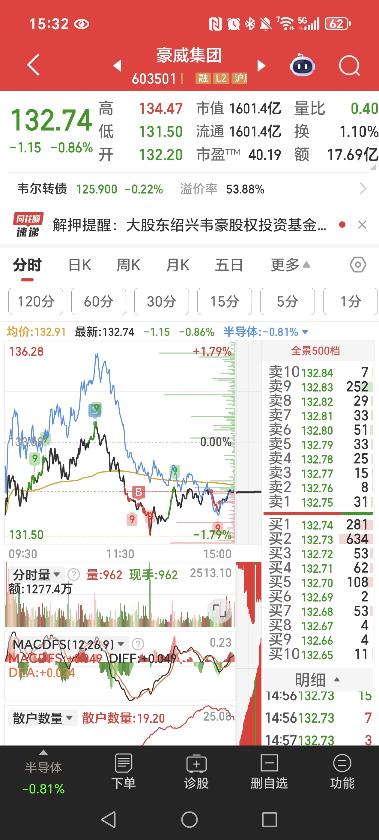 $豪威集团(SH603501)$ 今天尾盘忍不住补了点,地量地价,今天是两个月以来成交量最低的,明天关注130-134,有效跌破半年线考虑适当止损