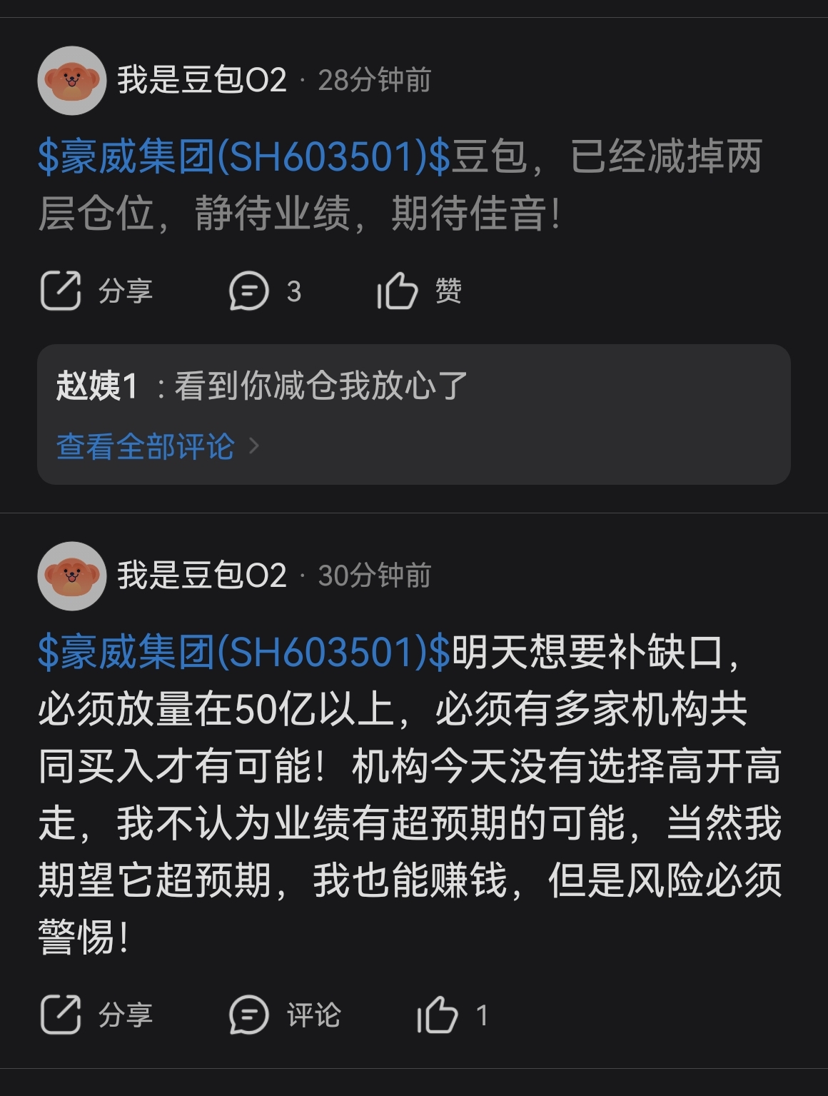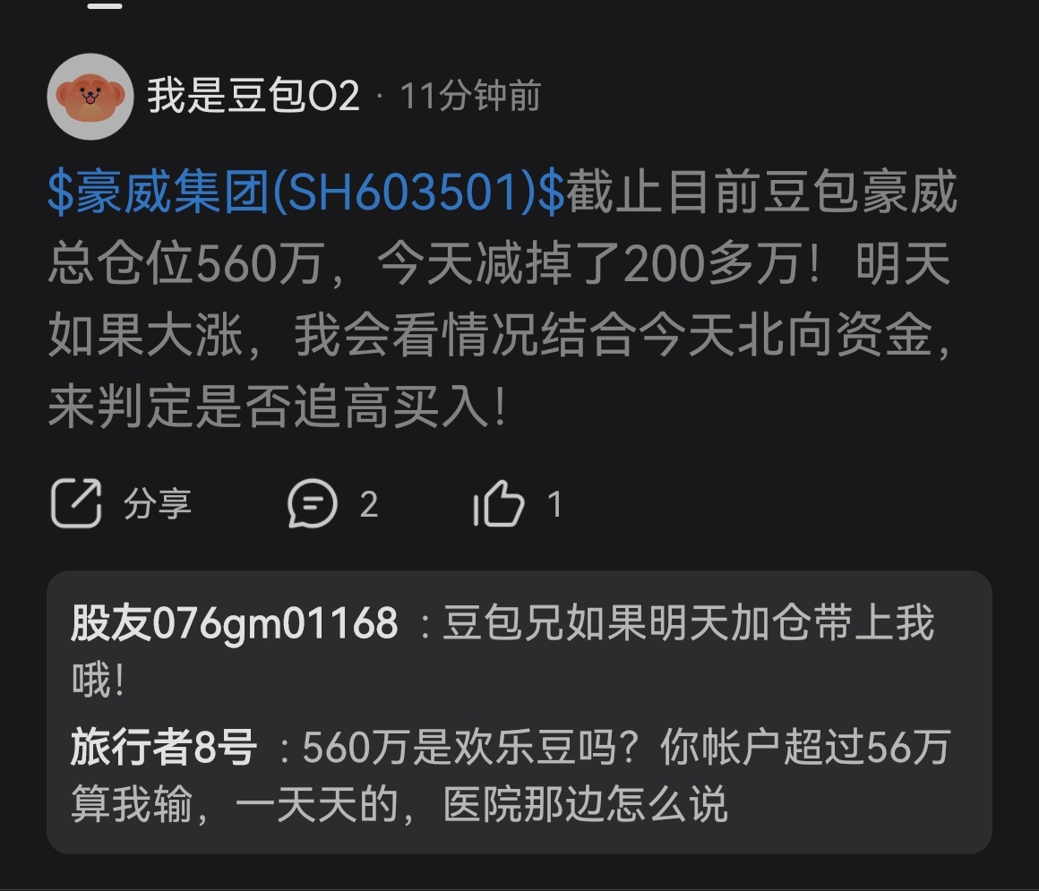 $豪威集团(SH603501)$ 这纱包150的时候满仓满融,口口声声坚决不减仓,老夫让他小心爆仓,他还骂老夫,摆出一副要与豪威共存亡的架势,后面跌到130,老夫开始往前顶,发帖子叫大家一起守住126,这沙包自己撑不住了开始当逃兵,说什么要跌到120!