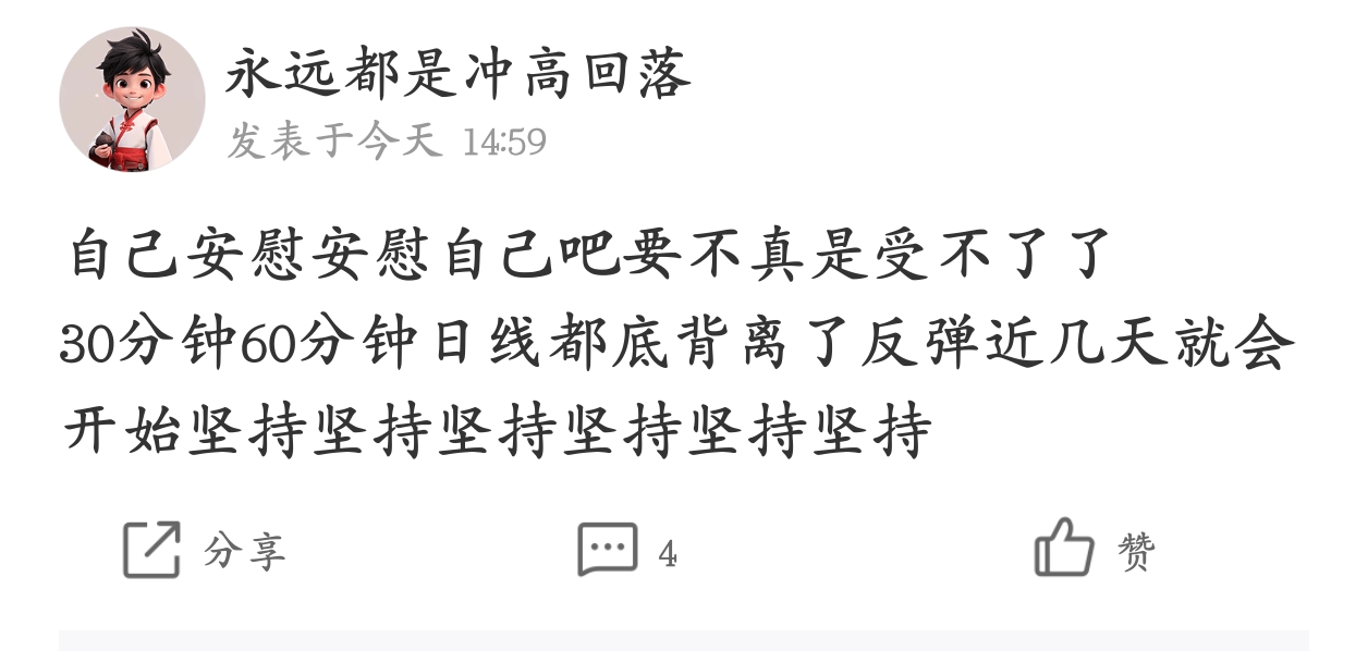 我是看明白了,主力啥时候把下面这位洗出去了才能涨,这位兄弟还能挣扎就说明洗盘不到