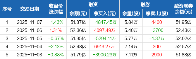 豪威集团:融资净偿还4847.45万元,融资余额51.87亿元(11-07)