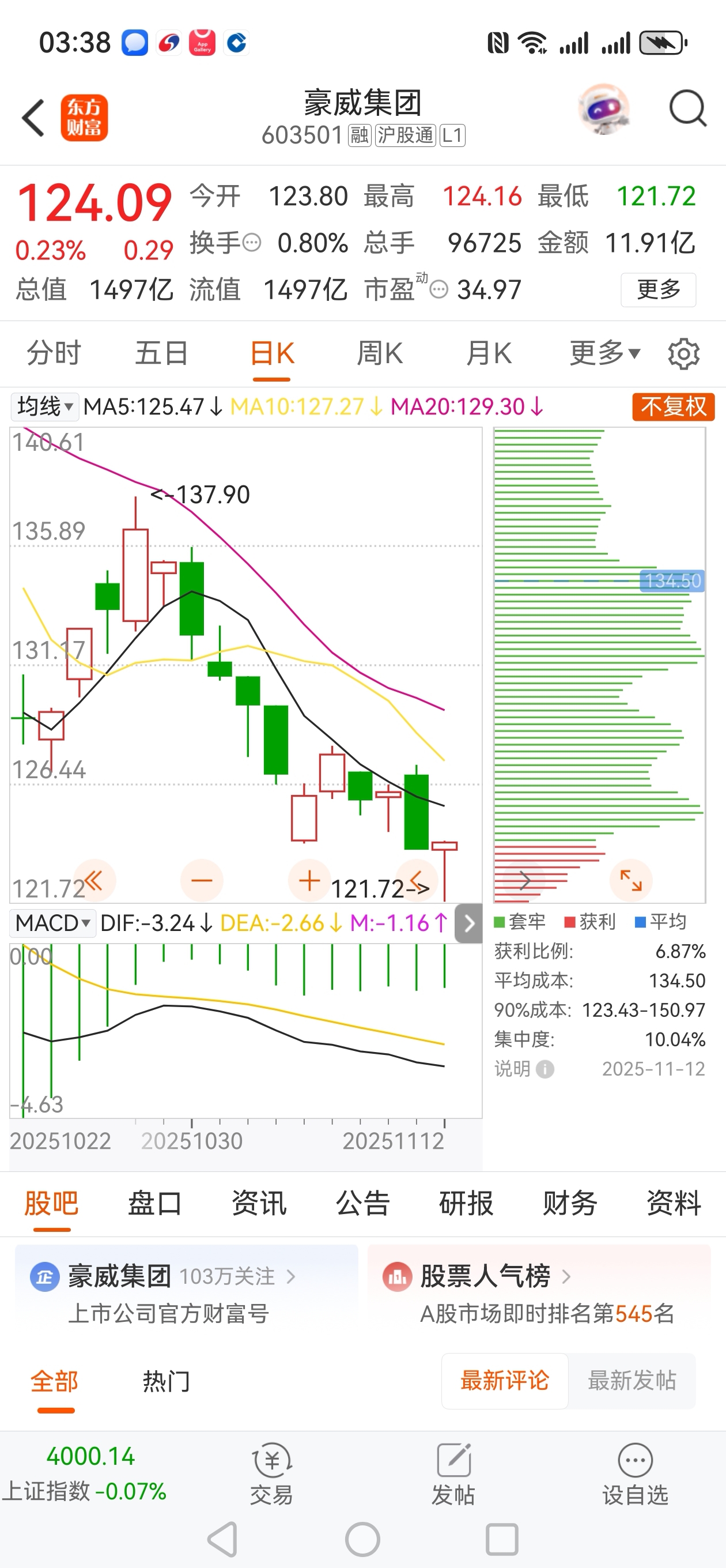 今天盯了一天的盘面准备好118元加仓降成本的结果跌到121.72就没有跌了没有加
