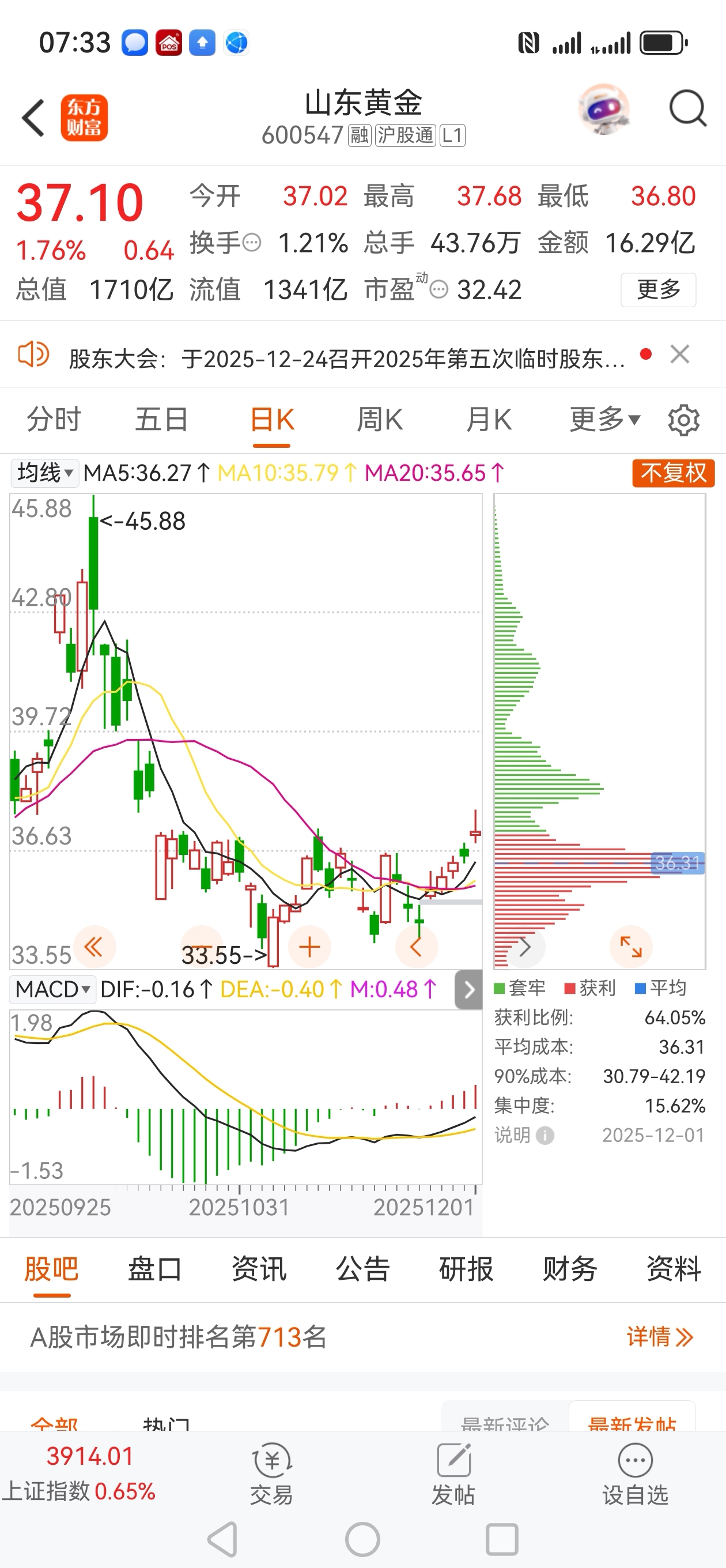 $豪威集团(SH603501)$ 被套豪哥哥的兄弟们得马上去配置点黄金股,黄金的大牛市还没有结束,我感觉黄金的圆弧W底形成了马上要走主升浪了,手中不光要有科技股也要有黄金股才安全些也能保证过年收益率上升