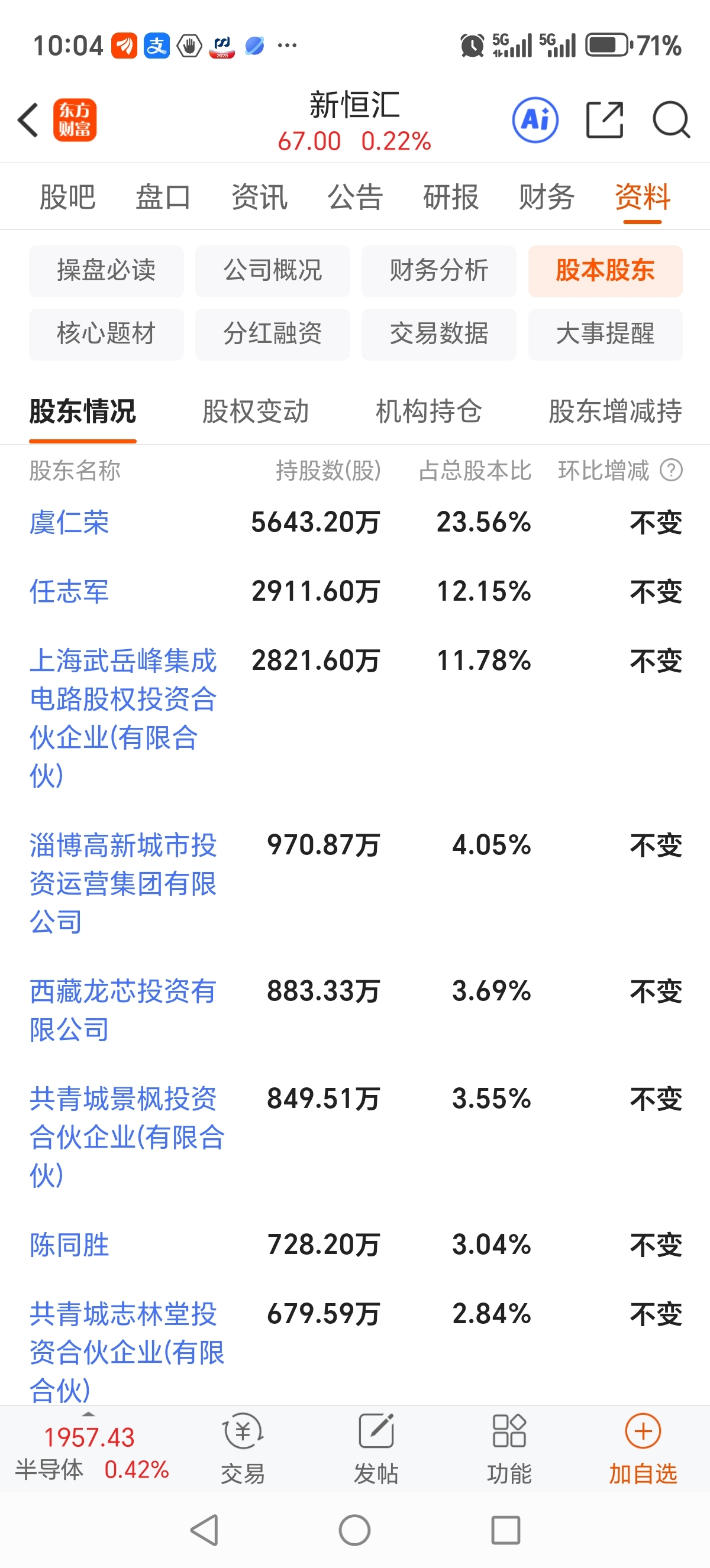 $豪威集团(SH603501)$ 豪威集团董事长虞仁荣持有控股新恒汇5600万股,是新恒汇实控人,目前市值35亿