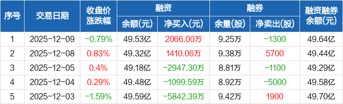 豪威集团:融资净买入2066万元,融资余额49.53亿元(12-09)