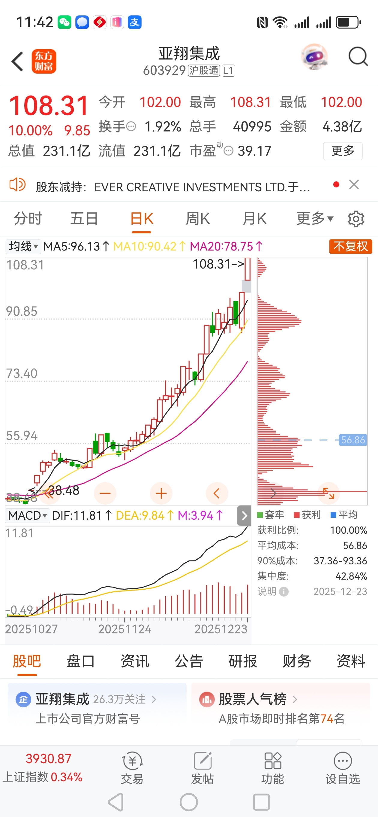 亚翔集成会不会是象易中天一样十几倍的涨啊?有没有高手指点一下还要不要去追明天早上。???