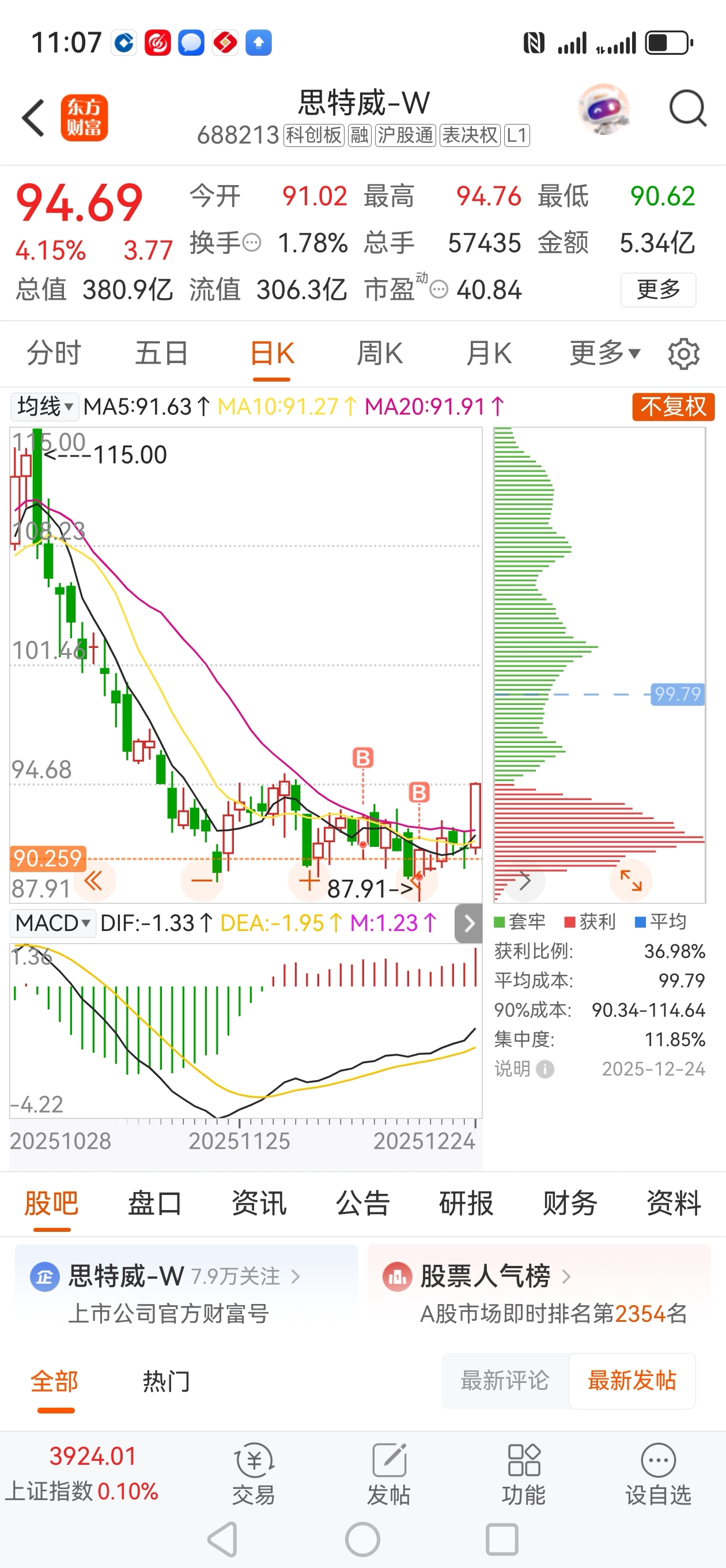 思特威的大底形成了盘整理好了好久了差不多要开始主升浪了