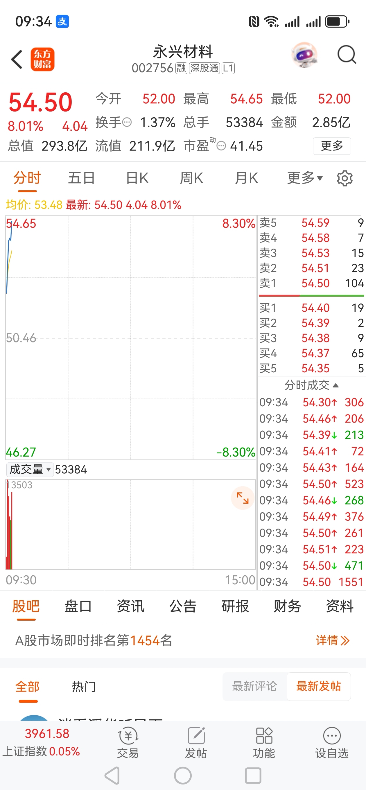 $豪威集团(SH603501)$ 永兴材料要涨停板了