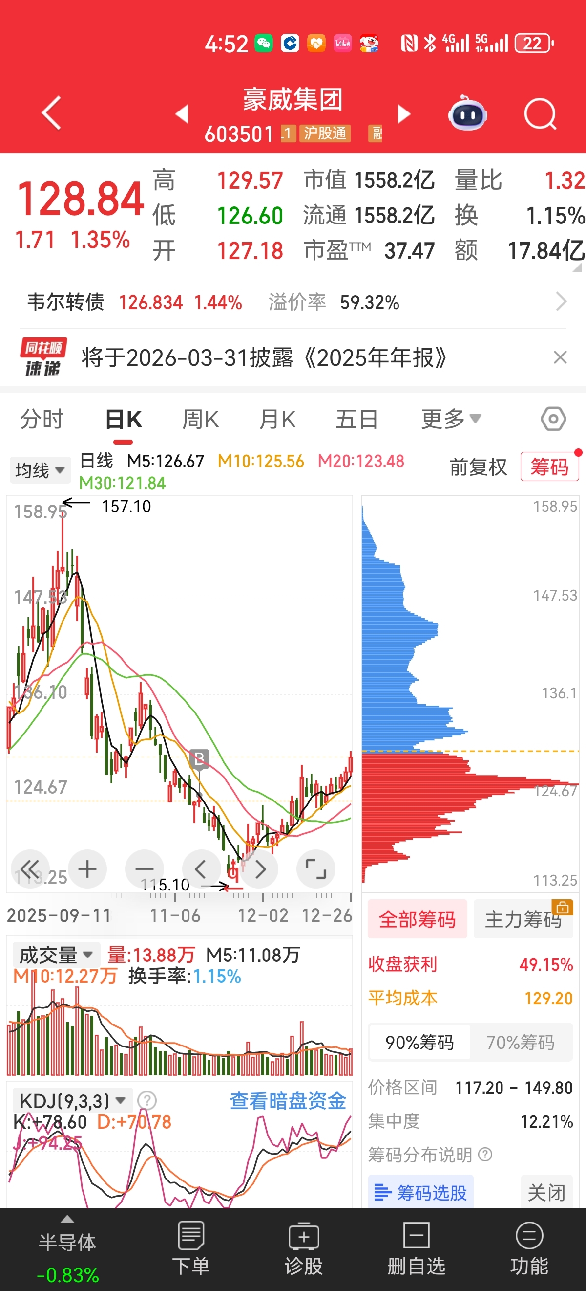 $豪威集团(SH603501)$ 123多建仓的,计划是跌10个点补仓的,跌到8个点就不跌了,没跌到位,仓位也没上去,现在也不敢加也不会抛,唉!躺着吧,仓位太小了