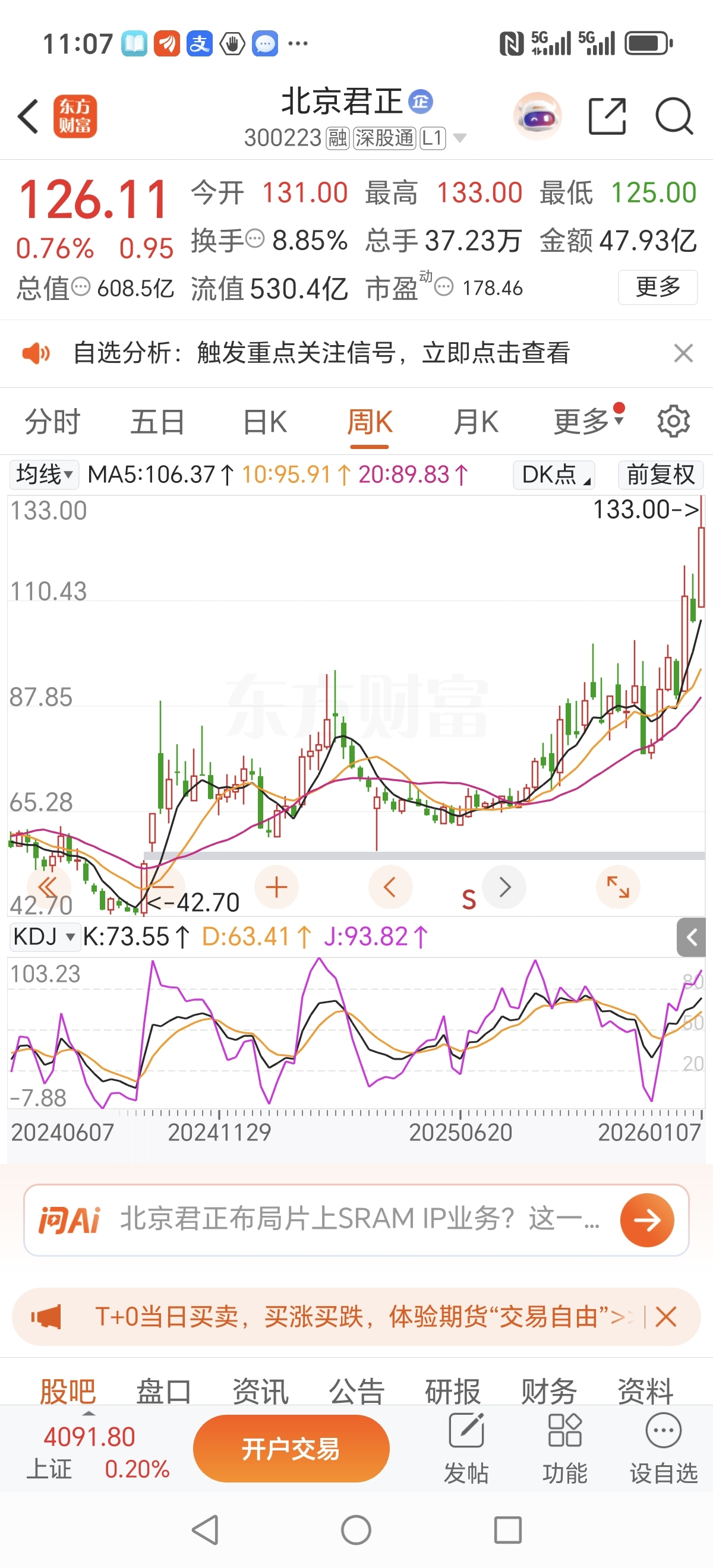北京君正昨前日日暴涨9%,昨日暴涨8%,今日继续飙升6%至130元直逼豪威集团,
