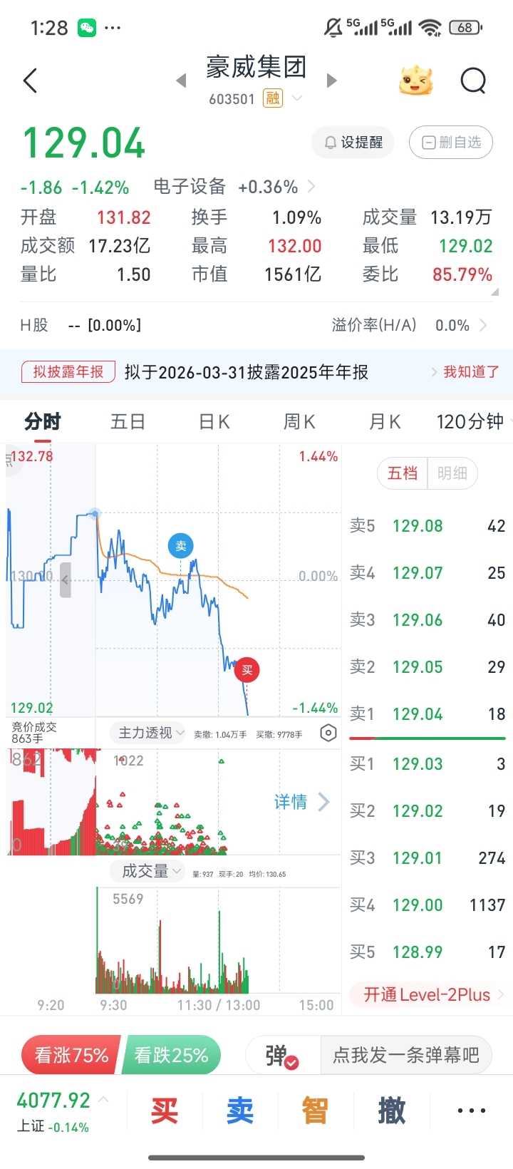 $豪威集团(SH603501)$ 128.9支撑130.42突破走强,站上132.55进上升通道
