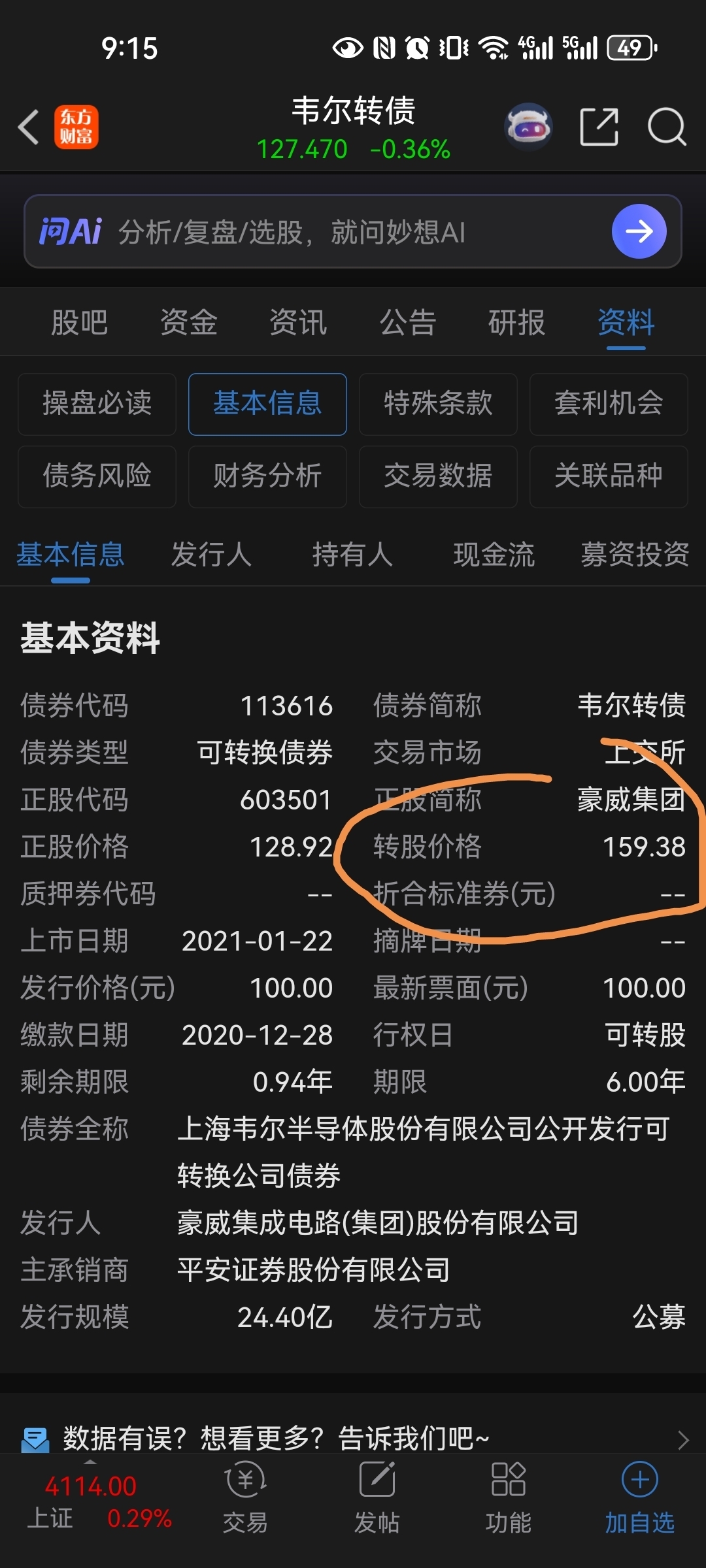 还有人理解转债159.38元是利好吗?这是明牌利空啊!这个就是大资金一直不愿意来