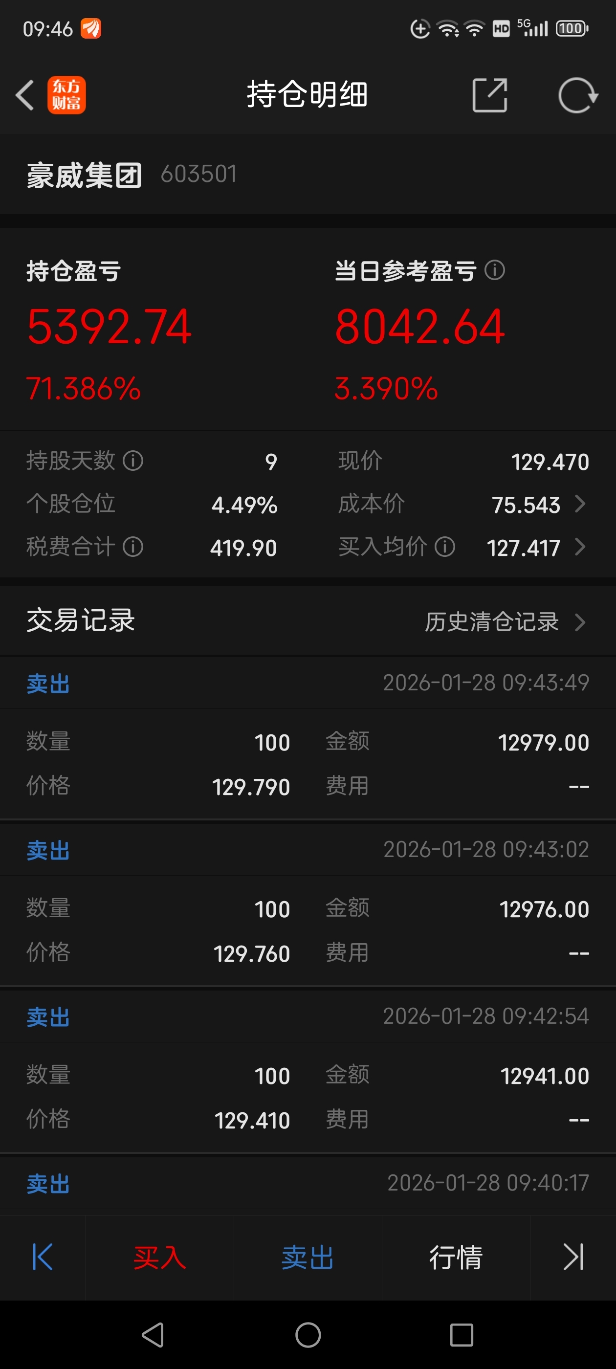 1900股全部卖出了!!!