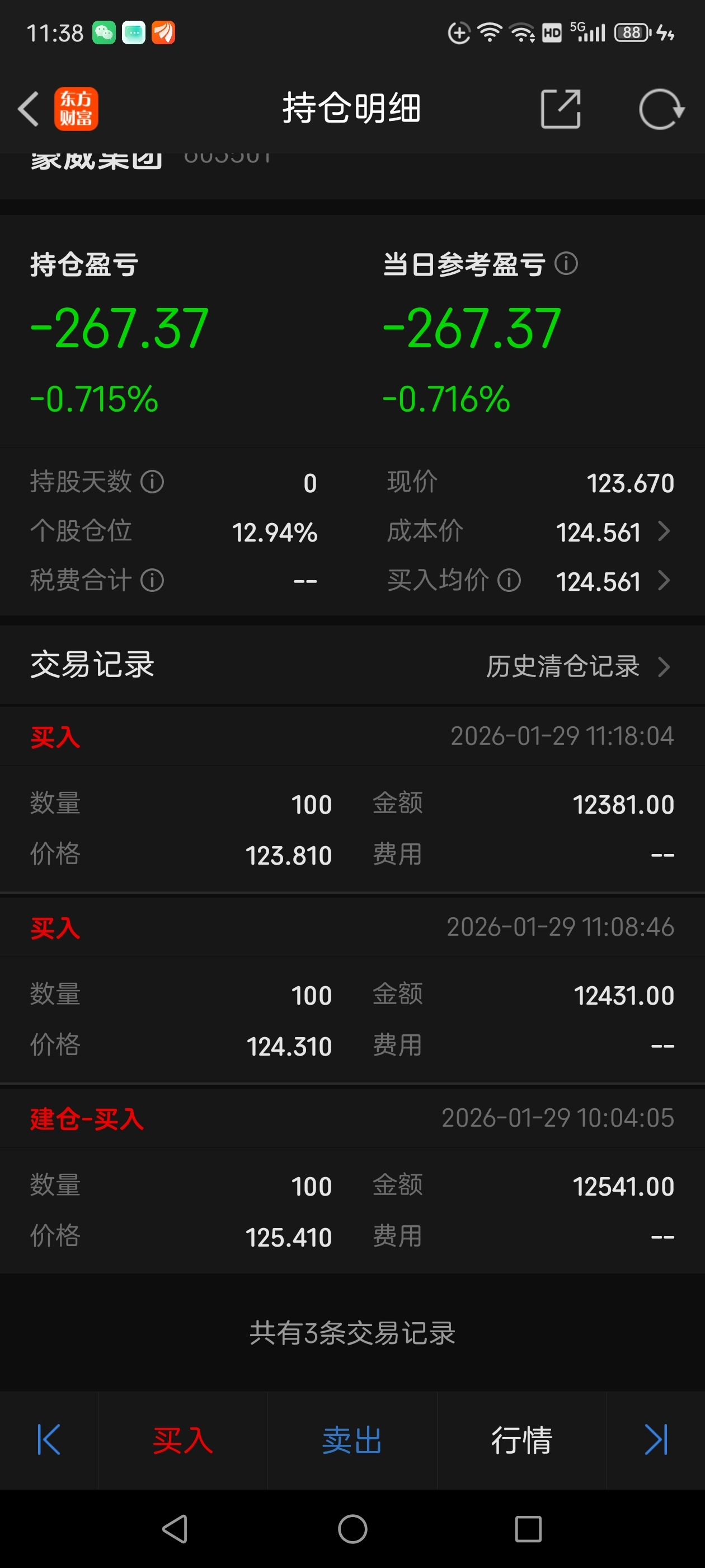 昨天全仓卖小赚5700块!今天忍不住又建仓买了三百股!亏了二百多!每跌五毛就买一