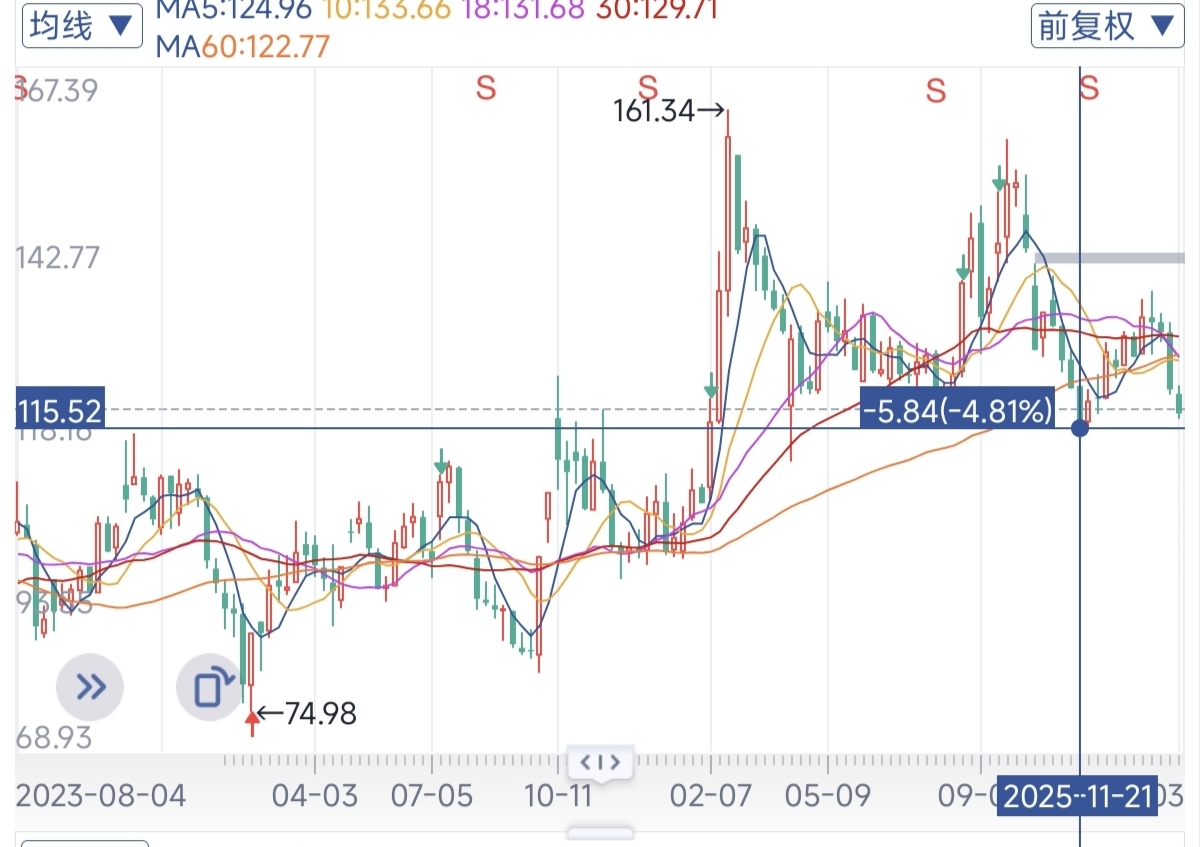 115.52中枢震荡平台支撑位。跌破就奔这100去了,不跌破就重新走新的上升趋势