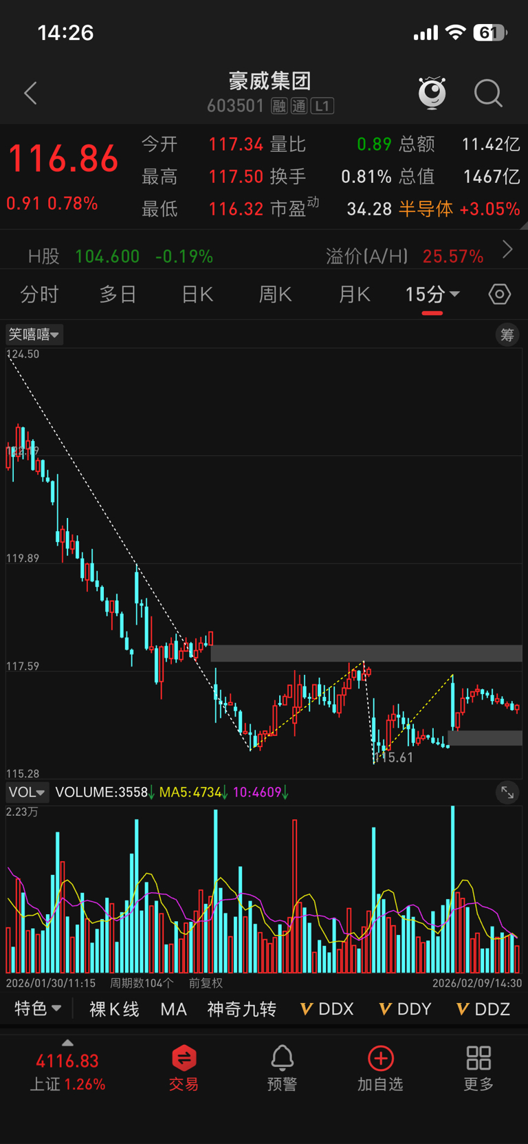 $豪威集团(SH603501)$ 十五分钟头肩底,感觉明天随时就要大阳线了,诱惑极大,忍住!忍住!忍住!不补仓!想买入的心快要按捺不住了!