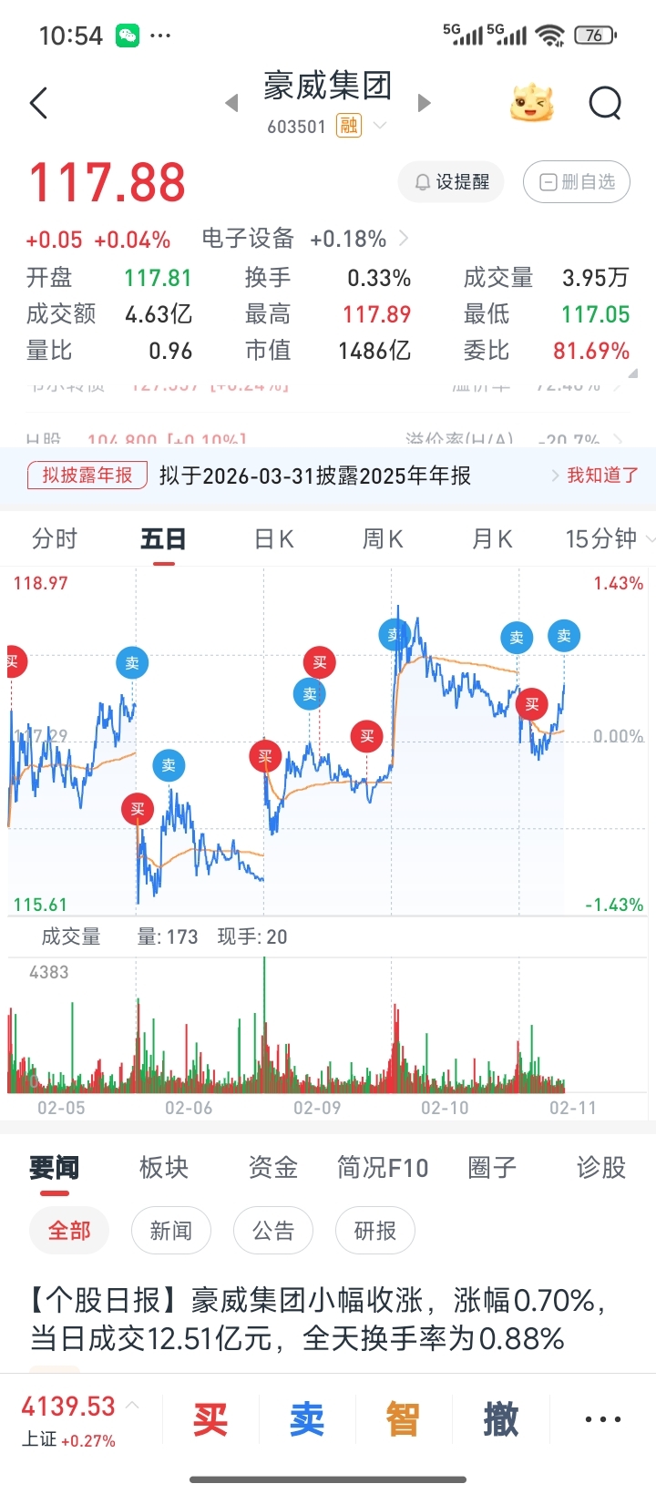 $豪威集团(SH603501)$ 117.63站稳,看涨
