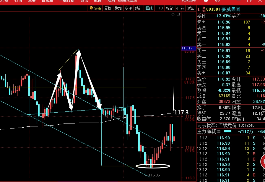$豪威集团(SH603501)$ M头跌幅满足了,117.3收盘站上才有机会反弹