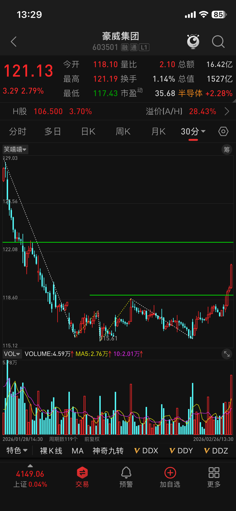$豪威集团(SH603501)$ 122.73,能到压力位就T一下