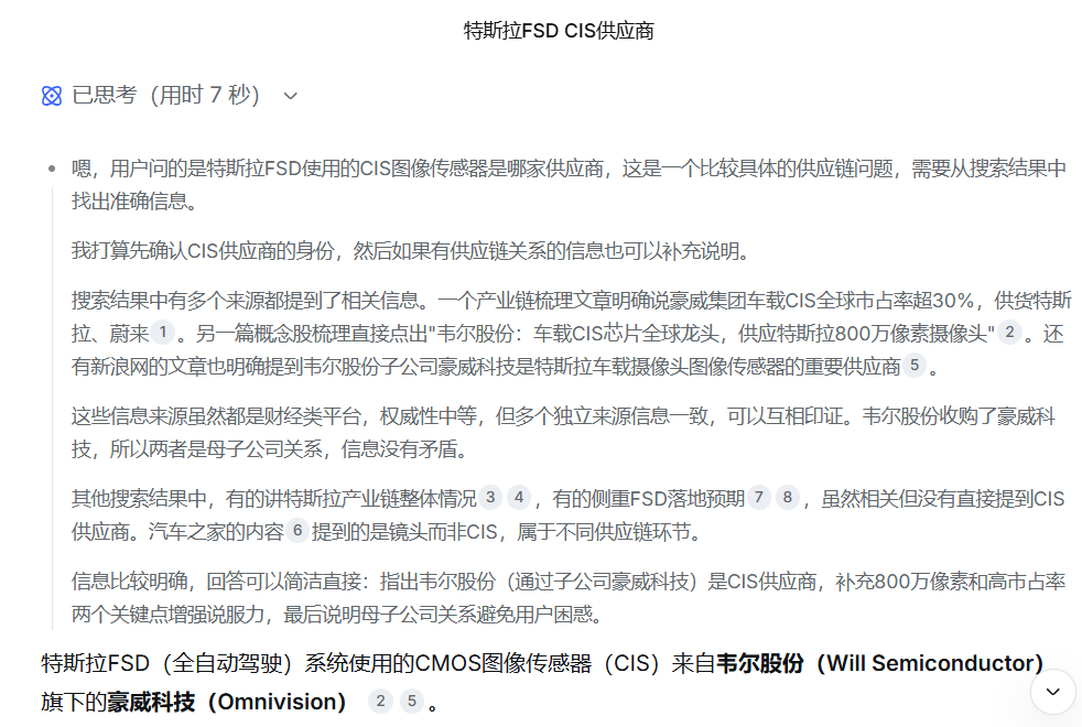 特斯拉FSD使用的CIS是谁的,它说的是豪威集团的