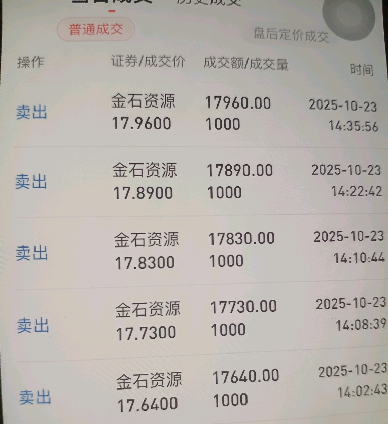 $金石资源(SH603505)$ 贪小钱损失惨重。今天彻底卖飞了。挂的卖单全部成交了。底仓都快卖完了。