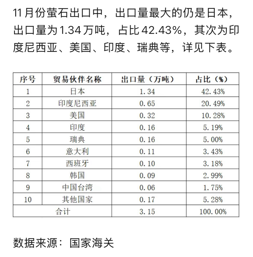 $金石资源(SH603505)$ 日本是我国萤石矿最大出口国,金石起飞!