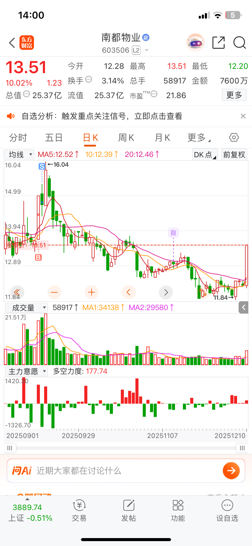$南都物业(SH603506)$ 唉……