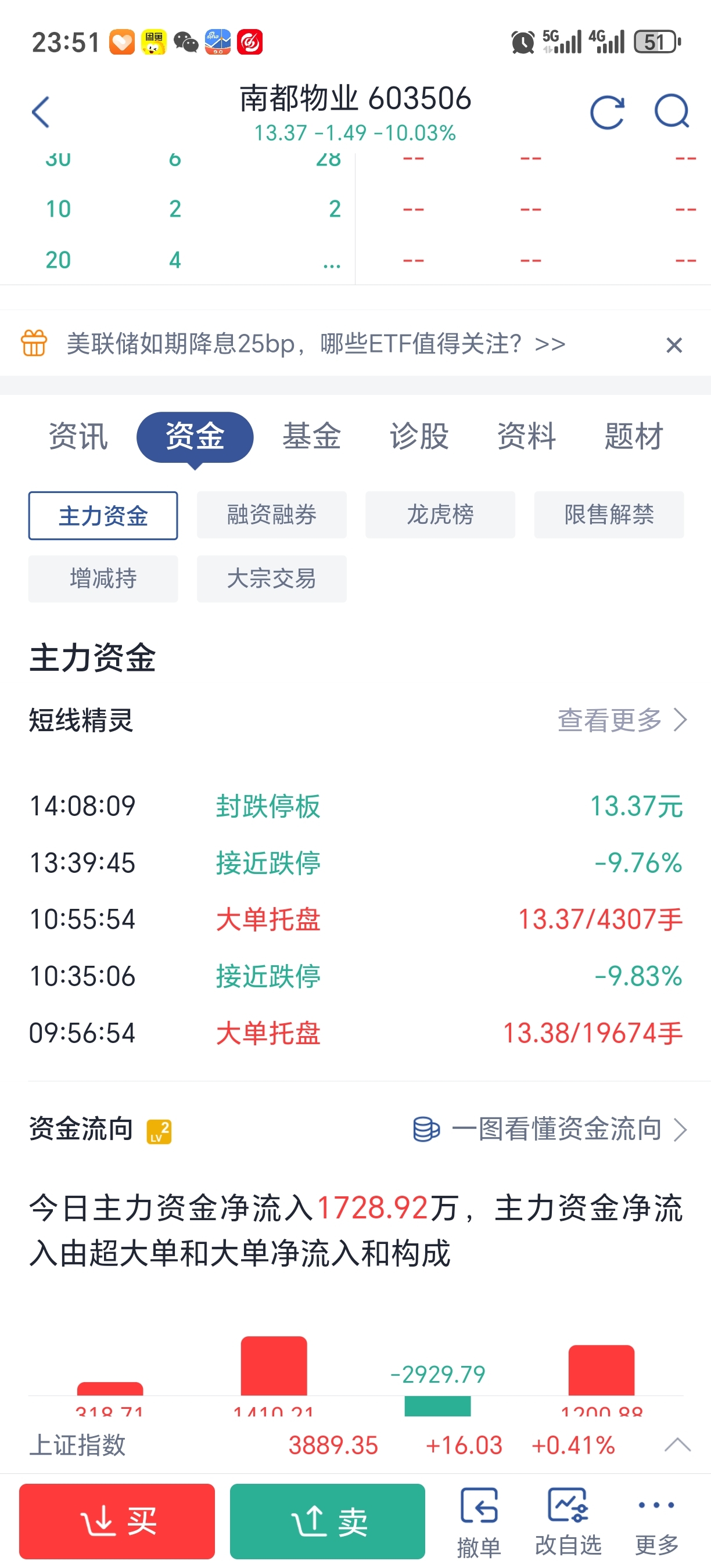 $南都物业(SH603506)$ 这个票,为啥我在国信金太阳app上看到的主力资金净流入是1728万?