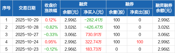振江股份:融资净偿还282.41万元,融资余额2.99亿元(10-29)
