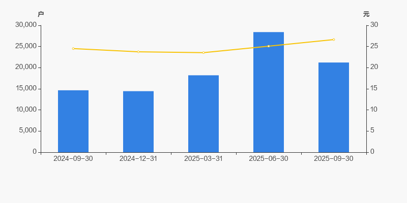2024年9月30日至今,公司股东户数显著增长,区间涨幅为44.82%。2024年9月30日至2025年9月30日区间股价上涨8.71%。