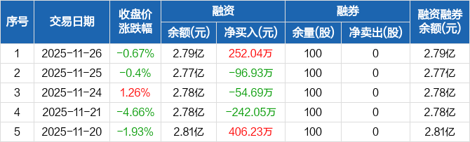 振江股份:融资净买入252.04万元,融资余额2.79亿元(11-26)